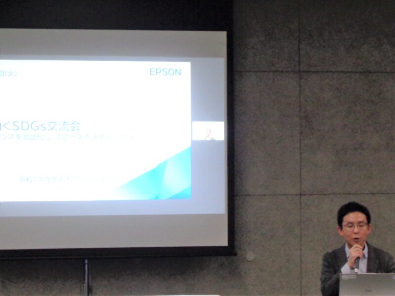 内容は、エプソン販売株式会社 新ビジネス推進部 グリーンモデル推進 岡田 洋平 氏による、SDGsの概要と最新動向、SDGsを経営戦略として理解する考え方などを学ぶ講義のほか、参加者の方々がそれぞれ現状の取組を整理し、SDGsのアクションを具体化して共有するワークショップを行いました。